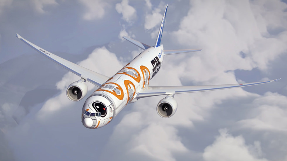 finalmente su Boeing 787 “Dreamliner” decorado como R2-D2 (más